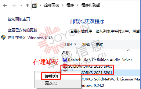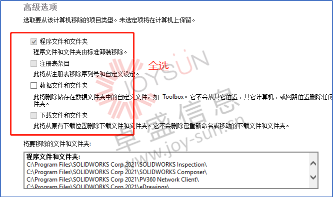 如何干净卸载SOLIDWORKS来源:SOLIDWORKS代理商-卓盛信息 如何干净卸载SOLIDWORKS 文章来源:SOLIDWORKS代理商-卓盛信息 在需要卸载SOLIDWORKS的电脑上,按以下步骤删除 1). 在控制面板中卸载SOLIDWORKS程序。 高级选项选择更改 勾选所有,请确认没有文件存在默认路径下,建议备份自己的SOLIDWORKS模板 返回到摘要,卸载就行了 2). 确保删除以下目录的文件(以下路径为默认安装在C盘路径,其他路径请自行查找) 注册表打开方式:win+R 输入regedit 隐藏文件夹查看:组织→文件夹和搜索选项 a. C:\Program Files\Common Files\SOLIDWORKS Shared b. C:\Program Files\SOLIDWORKS Corp c. C:\Program Files (x86)\Common Files\SOLIDWORKS Shared d. C:\Program Files (x86)\Common Files\SOLIDWORKS 安装管理程序 e. C:\Users\当前用户名\AppData\Roaming\SOLIDWORKS f. C:\Users\当前用户名\Documents下面所有带有SOLIDWORKS的文件夹 g. C:\SOLIDWORKS Data h. C:\ProgramData\SOLIDWORKS i. C:\ProgramData\FLEXnet下面的所有以“SW”开头的文件都要删除。 (以上部分文件夹为隐藏文件夹,请更改为文件夹选项“显示隐藏的文件…”后操作) 3) 删除相关注册表文件 a. HKEY_LOCAL_MACHINE\SOFTWARE\SOLIDWORKS b. HKEY_LOCAL_MACHINE\SOFTWARE\SOLIDWORKS Corporation c. HKEY_LOCAL_MACHINE\SOFTWARE\FLEXlm License Manager d. HKEY_LOCAL_MACHINE\SOFTWARE\Wow6432Node\SOLIDWORKS e. HKEY_LOCAL_MACHINE\SOFTWARE\Wow6432Node\ FLEXlm License Manager f. HKEY_LOCAL_MACHINE\SOFTWARE\Wow6432Node\SOLIDWORKS Corporation g. HKEY_CURRENT_USER\Software\SOLIDWORKS 4) 重新启动电脑即可 一如以往,谢谢阅读,快乐阳光!——江苏SOLIDWORKS代理商(SOLIDWORKS 2023)
